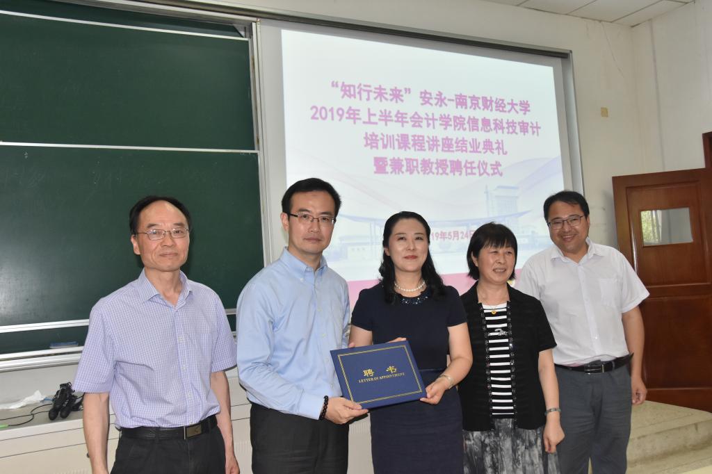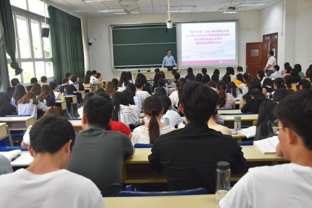 5月24日,2019年“知行未来”安永-南财会计学院信息科技审计系列讲座结业典礼暨兼职教授聘任仪式在我校仙林校区德济楼103举行。我校党委常委、副校长时现,安永中国风险咨询服务部合伙人顾卿华,我校会计学院党委书记姚学峰、院长姚文韵,安永部分讲师及会计学院参加培训的本科生、研究生共计140多人参加了结业典礼。结业典礼由会计学院副院长沈永建主持。