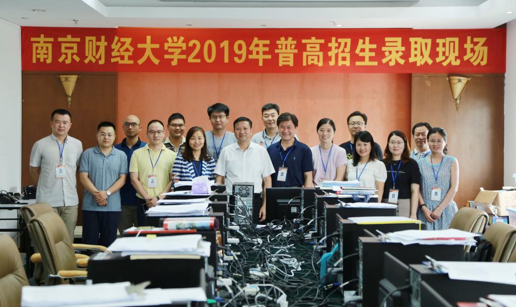 在招生录取现场,学生处处长孙丹兵、副处长孙菲汇报了我校前期招生宣传、提前批次录取和江苏省普通类本科一批模拟录取的相关情况。今年我校普高招生录取工作自7月1日启动,预计8月上旬结束。全校49个专业面向全国27个省、自治区、直辖市预计招收普通本科生4042人。在学校党委、行政的正确领导下,各部门各学院通力合作、协同作战,全体师生员工勤奋工作、共同努力,招生工作进展顺利并取得了较好的效果。目前已开始录取的提前批艺术类、国家专项计划和江苏省本一批次生源充足,特别是江苏普通本一批次投档线文科高出本一线15分,理科高出本一线16分,较往年有显著提升。张利民书记对各部门和各学院在今年招生宣传工作中取得的成绩表示充分肯定,对奋战在招录一线的工作人员表示诚挚感谢,他向现场的工作人员送上慰问品并合影留念。张利民书记强调,要进一步解放思想、转变思路,不断创新招生宣传工作模式,充分结合学校的学科优势、办学特色,开拓宣传渠道,创新宣传形式,吸引更多优质生源报考我校。他勉励大家坚守岗位、继续努力,以高度负责的精神、严谨细致的作风和一丝不苟的态度,顺利完成2019年普高招生录取工作。