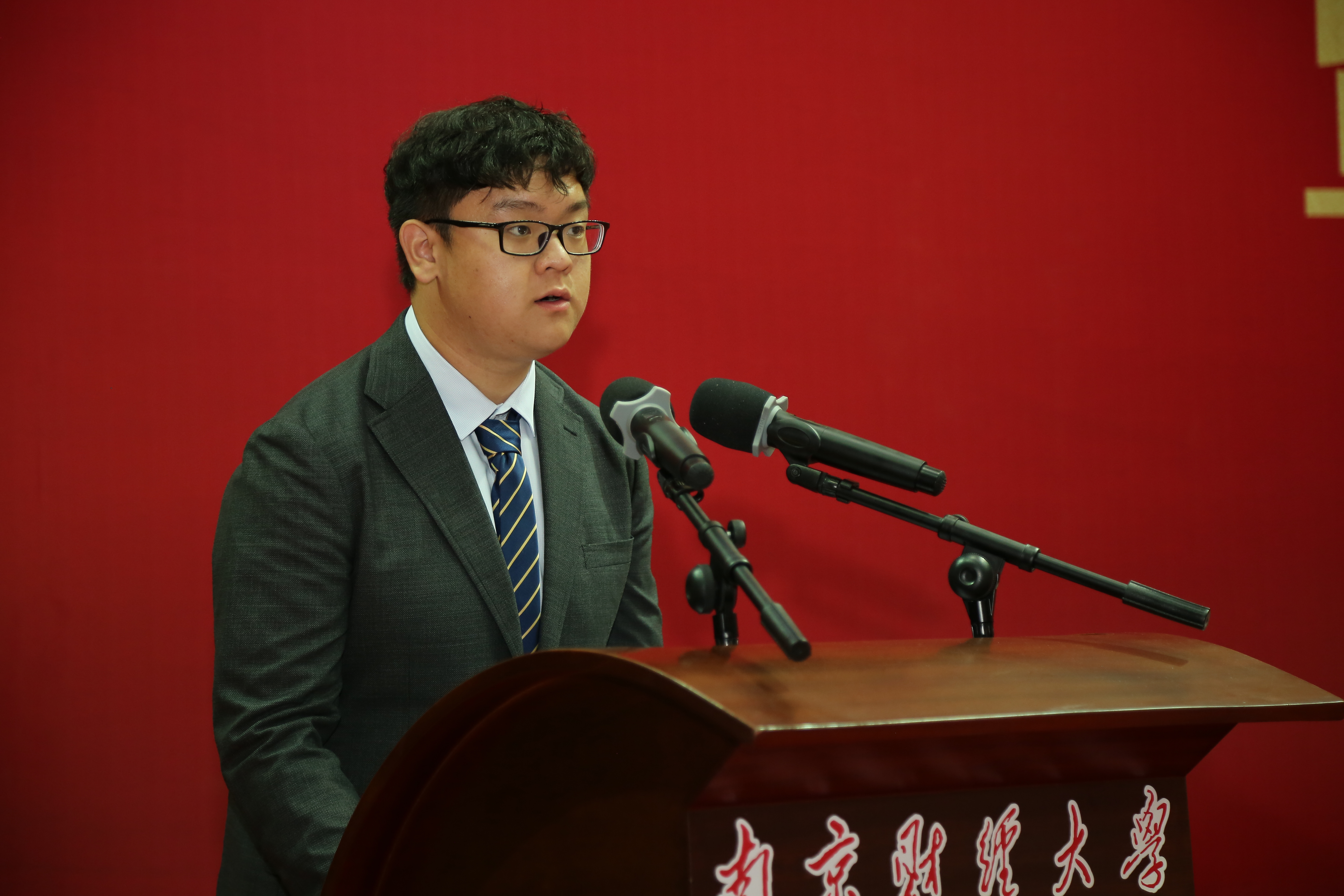 教师代表、国际经贸学院教授余泳泽发言。他希望同学们依旧对未来保持希望,依旧保持热情,依旧保持如孩童般的单纯。