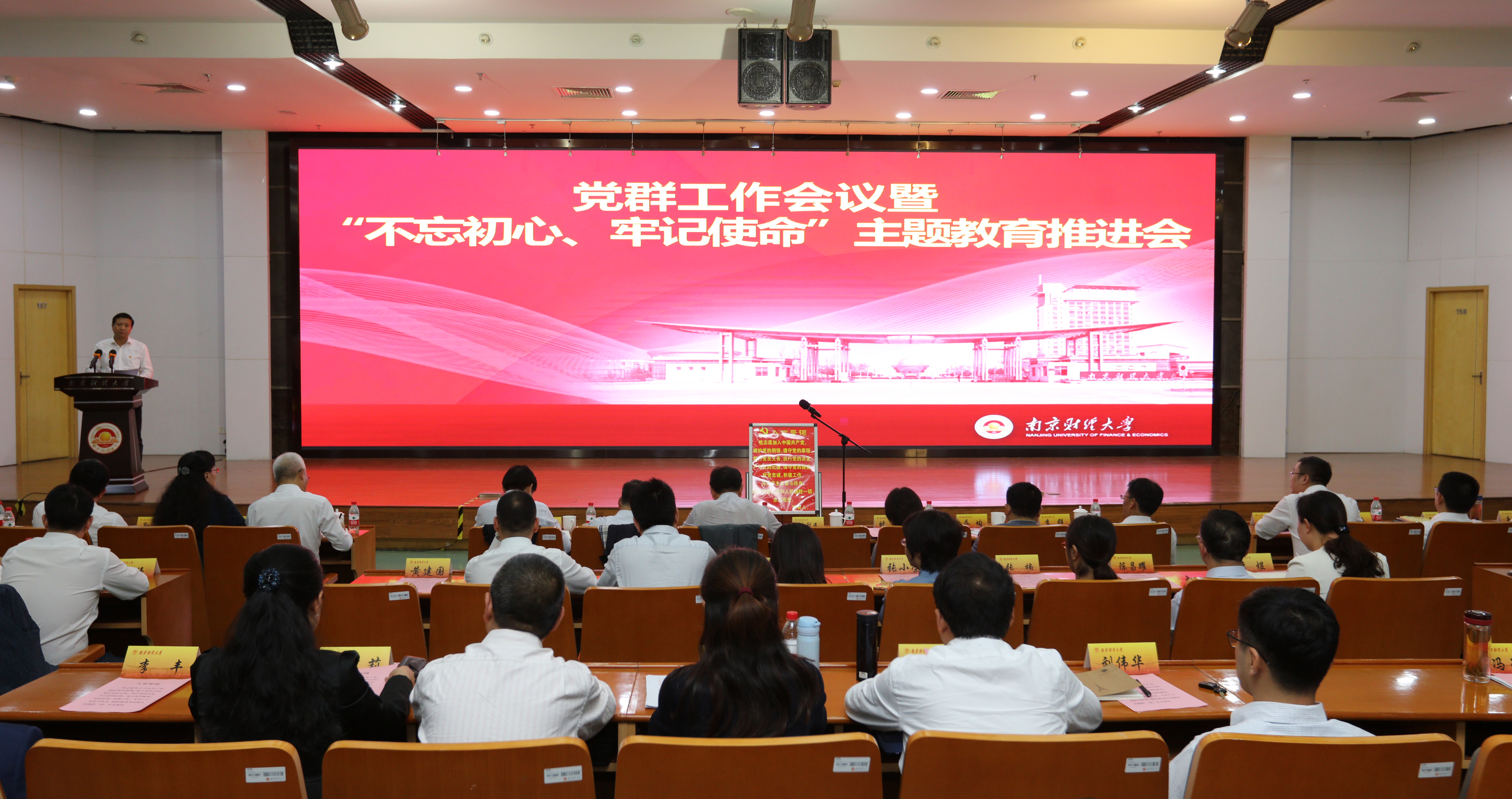 10月9日下午,我校在仙林校区图书馆报告厅召开党群工作会议暨“不忘初心、牢记使命”主题教育推进会,会议的主要任务是:坚决贯彻落实中央、省委决策部署,进一步理清工作思路、明确工作任务、压实各级责任、采取有效措施,进一步推动学校主题教育往深里实里走,确保取得实实在在的成效;部署下一阶段学校全面从严治党和纪检监察工作,为学校改革发展提供坚强保障。全体中层以上党员领导干部、全体基层党支部书记、新党员参加会议。会议由校党委书记张利民主持。