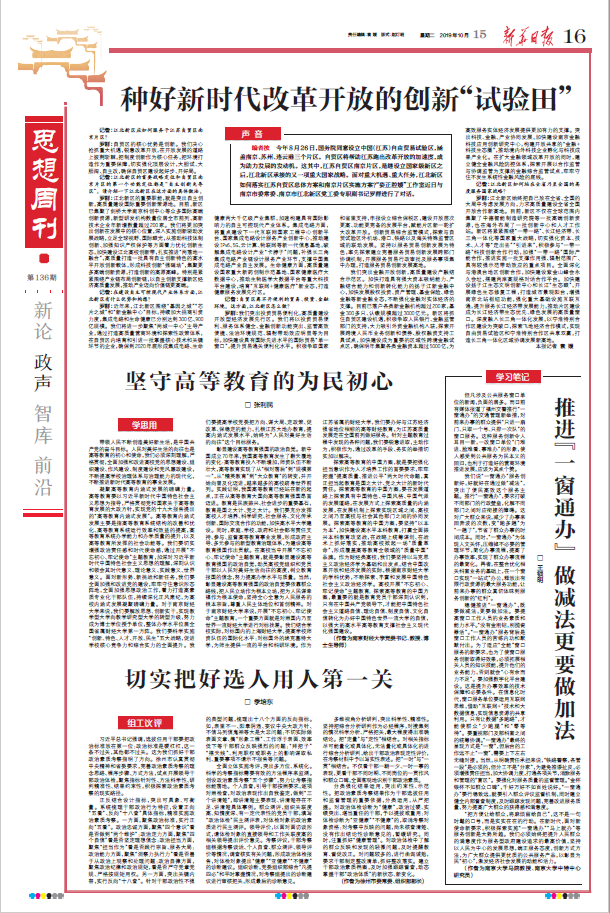 10月15日,《新华日报》思想周刊版刊发了校党委书记张利民的署名文章《坚守高等教育的为民初心》。文章指出,带领人民不断创造美好新生活,是中国共产党的奋斗目标。人民对美好生活的向往也是高等教育的初心和使命,我们必须深刻理解,严格贯彻,全面加强和改进高校党的思想建设、组织建设、作风建设、制度建设和党风廉政建设,不断提高学校治理体系与治理能力的现代化,不断推进新时代高等教育的事业发展。文章认为,凝聚高等教育内涵式发展的磅礴力量,我们要解放思想、创新实干,实现教学型大学向教学研究型大学的转型升级,努力成为博士学位授予单位,整体办学水平位居全国省属财经大学第一方阵。我们要科学实施“创新、特色、人才、开放、民生”五大战略,促进学校核心竞争力和综合实力的全面提升。我们要提高学校党委把方向、谋大局、定政策、促改革、保稳定的能力,扎根江苏大地办教育,提高内涵式发展水平,始终为“人民对美好生活的向往”这个目标服务。文章认为,对于南京财经大学来说,开展“不忘初心、牢记使命”主题教育,一个重要方面就是对照国内乃至世界一流财经大学进行对标找差。我们结合学校实际,对标国内的上海财经大学,提高学校师资队伍的国际化水平;对标国外的埃克塞特大学,为师生提供一流的平台和科研环境。作为江苏省属的财经大学,我们要办好与江苏经济强省地位相称的高等财经教育,为江苏高质量发展走在全国前列做好服务。针对主题教育过程中发现的各种问题,我们要锐意进取,主动作为,积极作为,通过改革的手段、务实的举措切实加以解决。文章强调,作为财经类高校,我们要坚持以马克思主义政治经济学为基础和出发点,结合中国改革开放和经济发展的实际,根据南京财经大学的学科优势,不断探索、丰富和发展中国特色社会主义政治经济学。探索高等教育的中国方案,最重要的就是教育党员干部深刻认识到,只有在中国共产党领导下,才能把中国特色社会主义道路自信、理论自信、制度自信、文化自信转化为办好中国特色世界一流大学的自信,以强大的高水平高等教育支撑社会主义现代化强国建设。