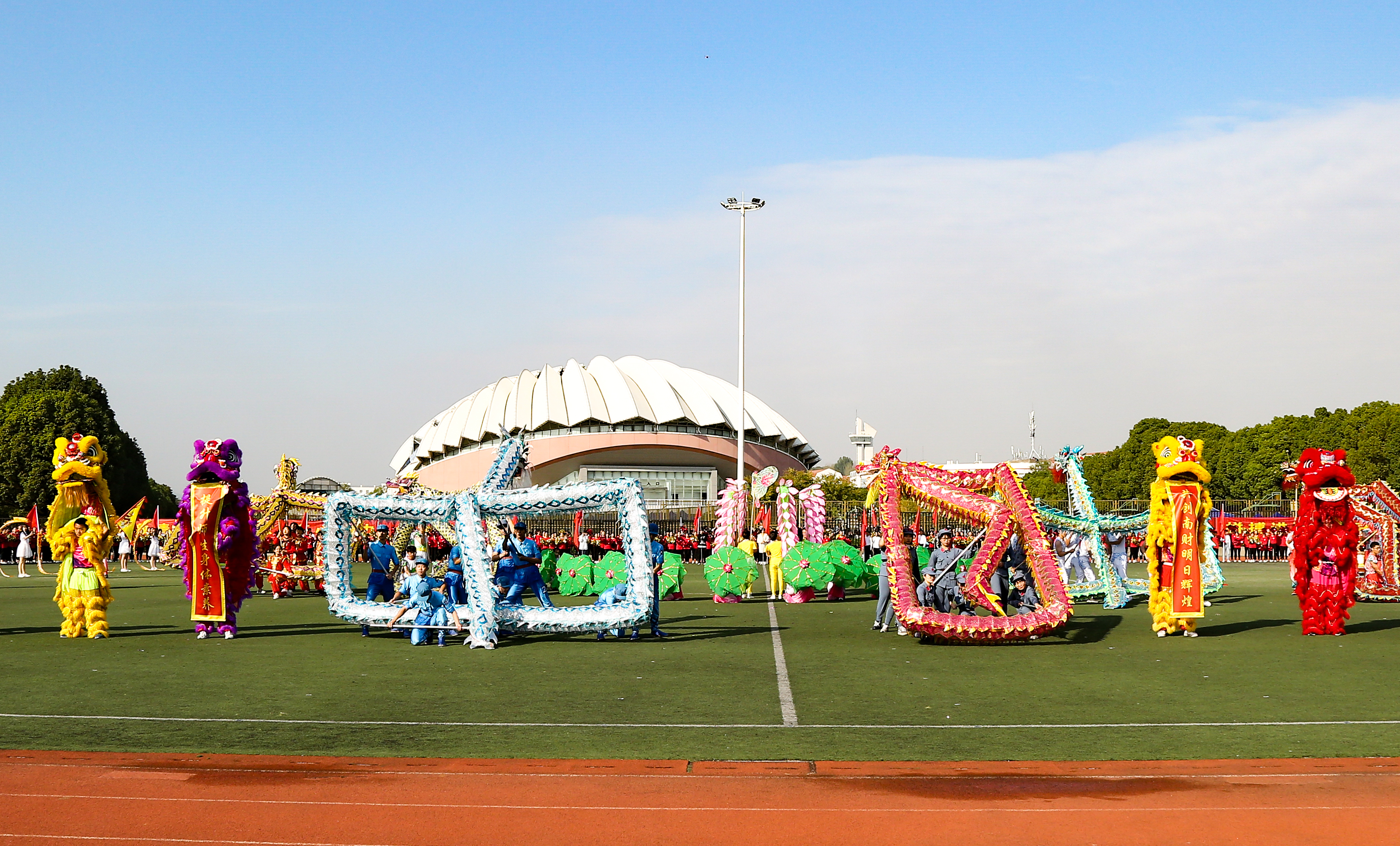 开幕式后进行了精彩的广播操、花球啦啦操、舞龙舞狮表演。在激情澎湃的音乐声中,我校2019年田径运动会正式开始,各项比赛相继展开。在为期两天的比赛中,我们期待着各代表队的运动员们奋勇拼搏、赛出新高。