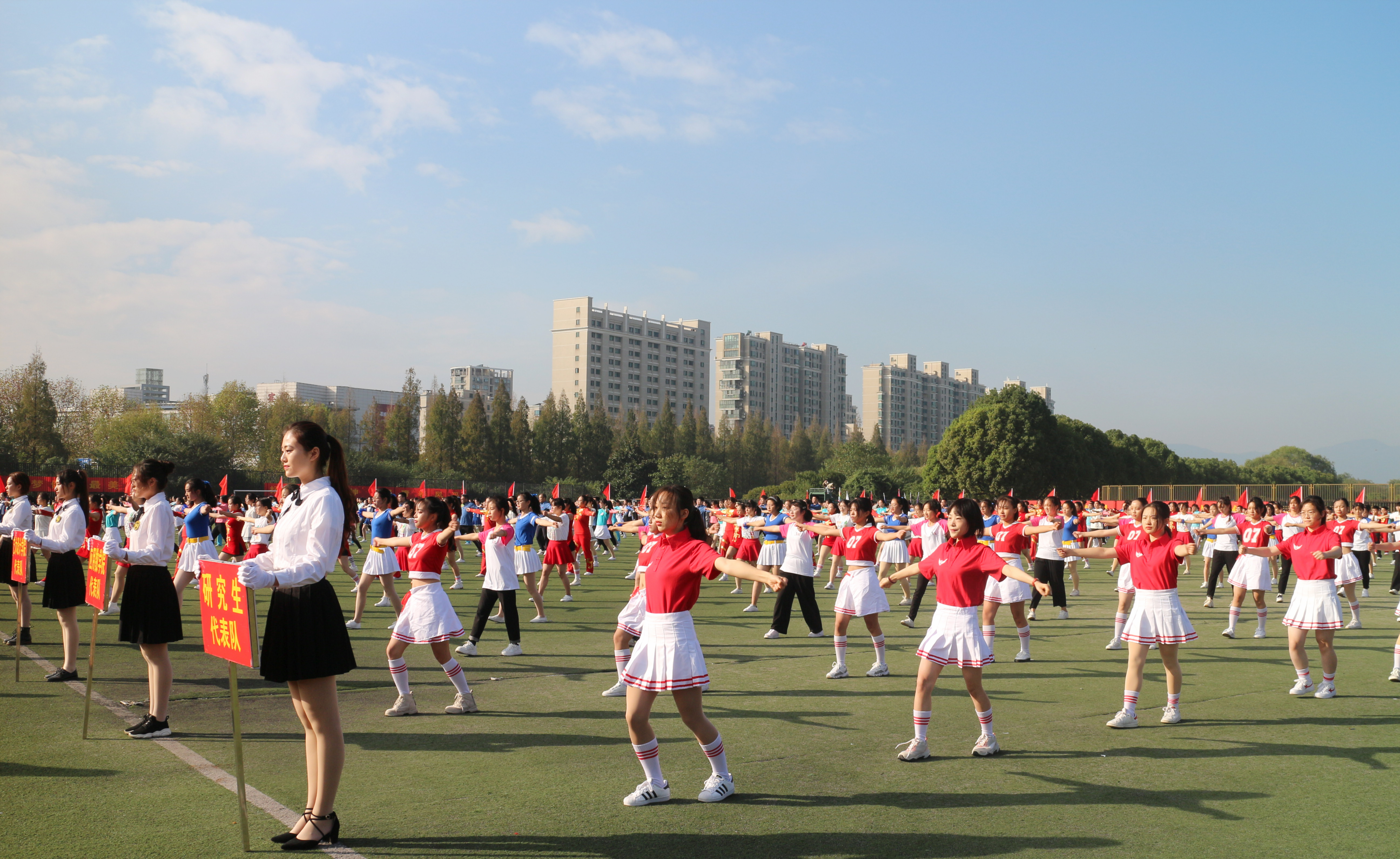 伴随着慷慨激昂的运动员进行曲,来自学院、教职工代表队的2000多名运动员迈着矫健的步伐,意气风发地走过主席台,接受校领导的检阅。他们的飒爽英姿充分展现了我校师生锐意进取、奋发向上的精神面貌。