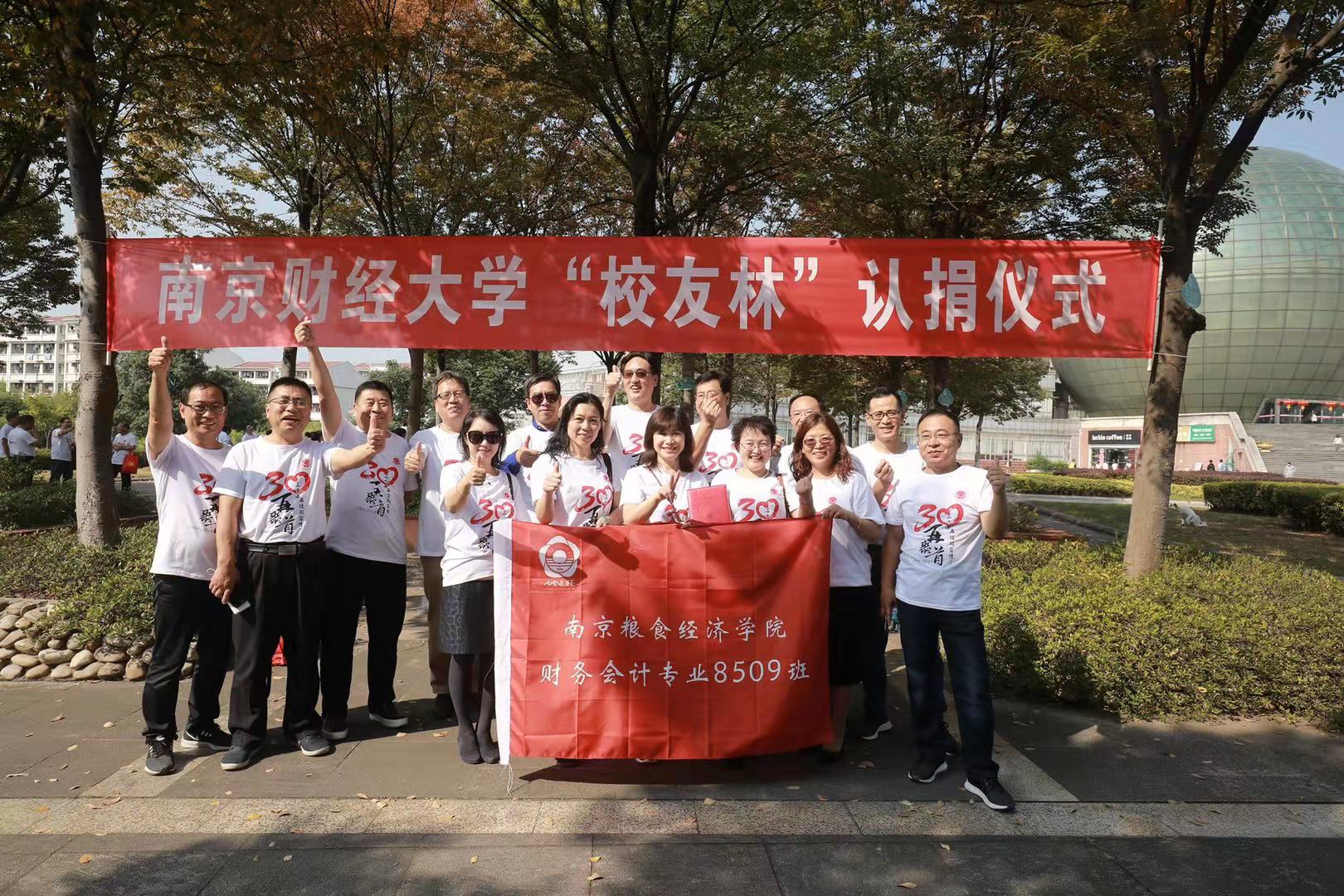 下午,在学生志愿者的引导下,校友们参观了仙林校区。在“校友林”中,校友们在认养的树木上挂上专属于自己班级的铭牌,寄情母校,合影留念。经济学院、财政与税务学院、金融学院、国际经贸学院、会计学院、工商管理学院、食品科学与工程学院等为迎接校友们的回归举办了校友论坛暨人才培养座谈会,校友们热情参与,积极分享自己的生活工作经历。在“重返20岁”联欢活动中,在校生与返校校友们以歌会友、以舞结缘,在一片欢声笑语中,校友们仿佛回到了三十年前,归来仍是少年意气。活动在全体合唱《同一首歌》中圆满落幕。
