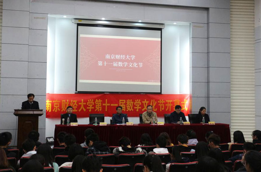 11月18日下午,我校第十一届数学文化节开幕式在仙林校区德经楼二楼报告厅举行。校党委常委、副校长李群出席会议,校团委书记张励行,经济学院教授王庚,应用数学学院党总支书记常根发、院长王宏勇、党总支副书记张杰,应用数学学院教师代表以及各学院本科生与研究生代表参加了开幕式。开幕式由应用数学学院常根发书记主持。