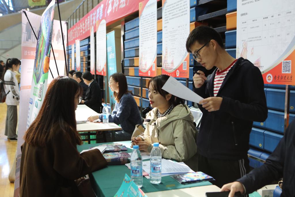 来自我校仙林、福建路校区的本、硕、博毕业生,以及省内外高校相关专业的毕业生前来参加此次招聘会,积极投递个人简历,与招聘人员交流,全面了解用人单位情况。现场人山人海,气氛热烈。许多低年级的同学也纷纷来到现场进行实习咨询,了解市场需求,积累求职经验,为未来就业做好准备。