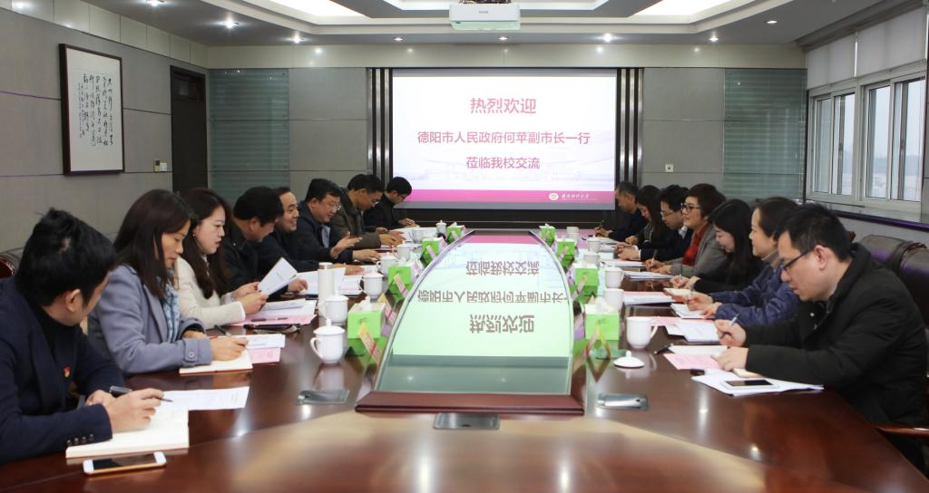12月18日下午,四川省德阳市人民政府副市长何苹携市委组织部、市政府办公室、市科技局等负责同志来访交流座谈,旨在推进校地合作相关事宜。程永波校长在行政楼1009会议室接待了何苹副市长一行。