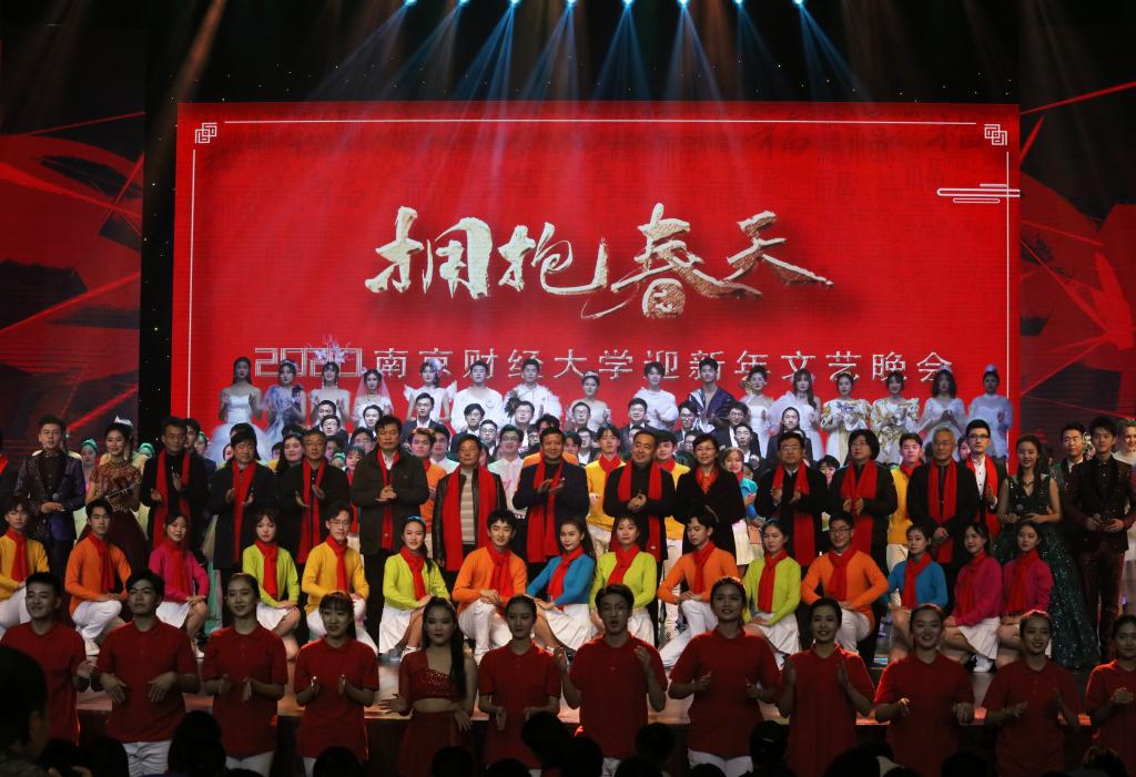 在观众期待的掌声中,歌舞表演《我和2020有个约》拉开了晚会序幕,富有张力的表演充分展示了我校学子的青春朝气。大学生艺术团桐馨剧社原创诗作《诗咏南财》隽永清丽,耐人寻味,诗意地描绘出校园的山形水貌,各学院的斑斓色彩。由大学生艺术团舞蹈团带来的舞蹈《等待春天》舞姿曼妙,舞步轻盈,红白的视觉冲击展现出对春天新希望的期待。大学生艺术团合唱团献上的表演唱《哈喽,单车》形式新奇,立意深刻,让观众会心一笑的同时,引发对日常使用共享单车不良现象的思考。国际教育学院外国留学生带来的表演唱《中国话》展现中国博大精深的语言文化,洋溢着留学生们对中华文化的热爱与传扬。民族乐团带来的新民乐《盛世国乐》气势恢宏,古韵悠长,奏出每个国人心中的大国之音。节奏欢快、动感十足的歌舞《Young Party》生动展现大学生艺术团流行乐团的张扬个性。舞蹈串烧《歌唱祖国》内容丰富,余韵悠长,深情表达教职工舞蹈团对祖国的眷恋与热爱。舞蹈《都市印象》高超的舞蹈动作配上梦幻的舞台布景,诠释都市的迷人魅力。歌曲走秀《春又来》婉转悠扬的歌曲结合时尚的T台走秀,收获观众的阵阵尖叫与掌声,将晚会气氛推向高潮。此外,各学院以及毕业校友还暖心献上新年祝福视频,真诚表达对学校的美好祝愿以及对新年新生活的向往和憧憬。最后,晚会在歌舞《再一次出发》中圆满落幕。