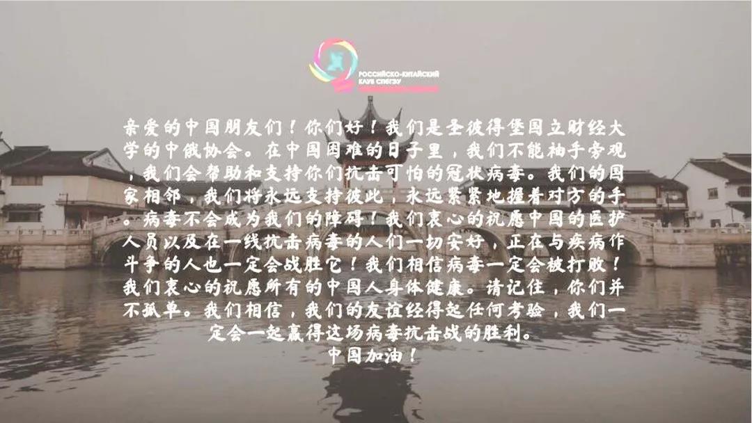 圣彼得堡国立财经大学中俄协会向学校发来抗疫慰问信