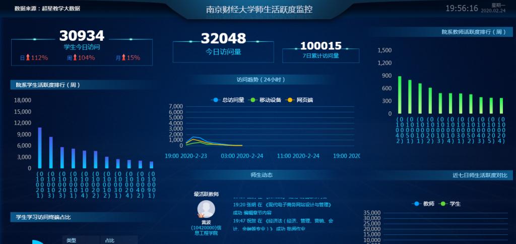 2月24日,我校391门本科课程、227名授课教师、26451人次本科生,按原定教学计划、依照教学日历,以在线教学的形式正式开课,数千名师生通过视频直播、录播、网络互动等各种方式,开展课程教学活动。本学期,按照既定课表安排,我校共将开设1401门课程。