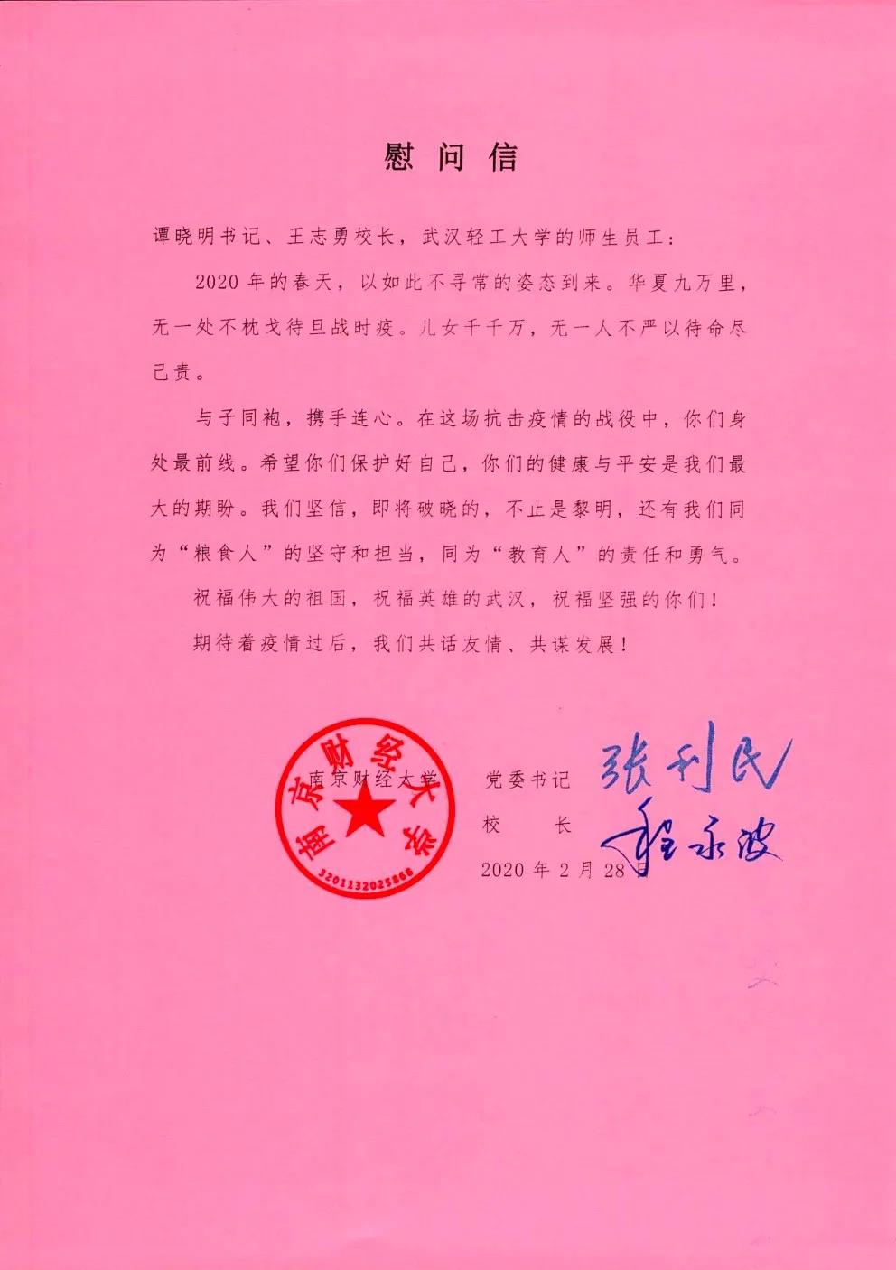 我校向武汉轻工大学发去慰问信