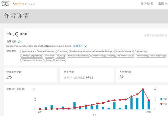 我校胡秋辉教授入选爱思唯尔2019年中国高被引学者榜单