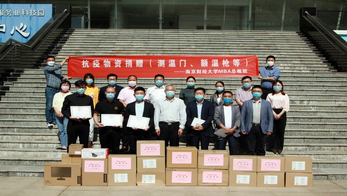 5月13日下午,我校MBA教育中心企业家联合会会长陈雷远、南京永利广告有限公司总经理郭德林、句容牡丹钢结构工程有限公司董事长巫庭宝、南京一银一幕影视传媒有限公司总经理李安东、南京百欧福农业科技有限公司总经理季小波一行到访我校,作为MBA中心总裁班学员代表向我校捐赠全套测温门、额温枪、kn95口罩等防疫物资,助力我校疫情防控工作。捐赠仪式在福建路校区综合楼举行。我校党委常委、副校长张为付出席仪式,对外联络处、保卫处、继续教育学院、红山学院、MBA教育中心相关负责人参加仪式。