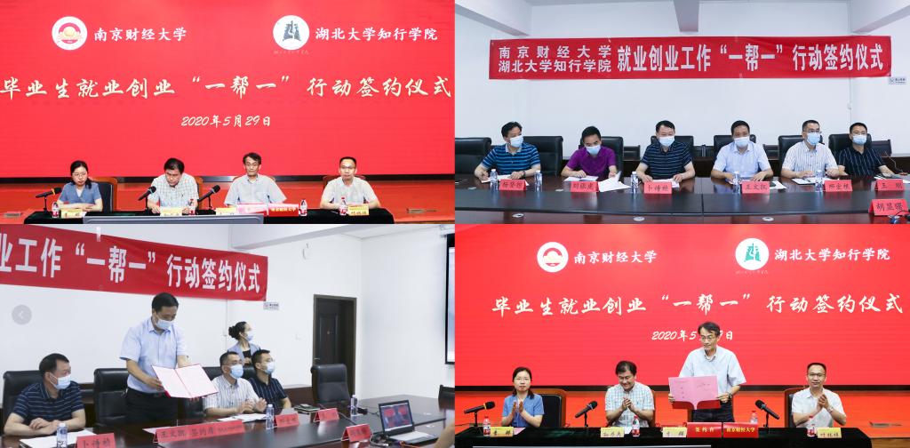 5月29日上午,我校与湖北大学知行学院通过“云”会议形式,跨越千里,视频连线,举行就业创业“一帮一”签约仪式。主会场设在我校仙林校区图书馆报告厅,湖北大学知行学院设分会场。我校党委常委、副校长李群,湖北大学知行学院校长卜诗桢、副校长王文凯出席仪式,两校相关职能部门负责人参加会议。会议由我校学生处处长孙丹兵、湖北大学知行学院招生就业处处长邢宏根主持。