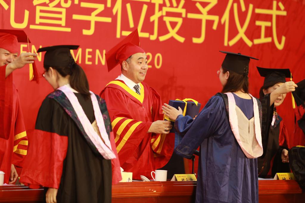 校长程永波为获得学位的毕业生代表颁发学位证书