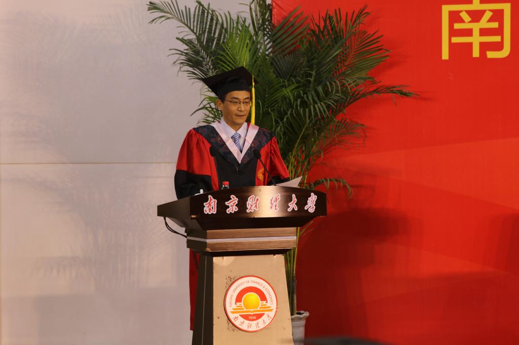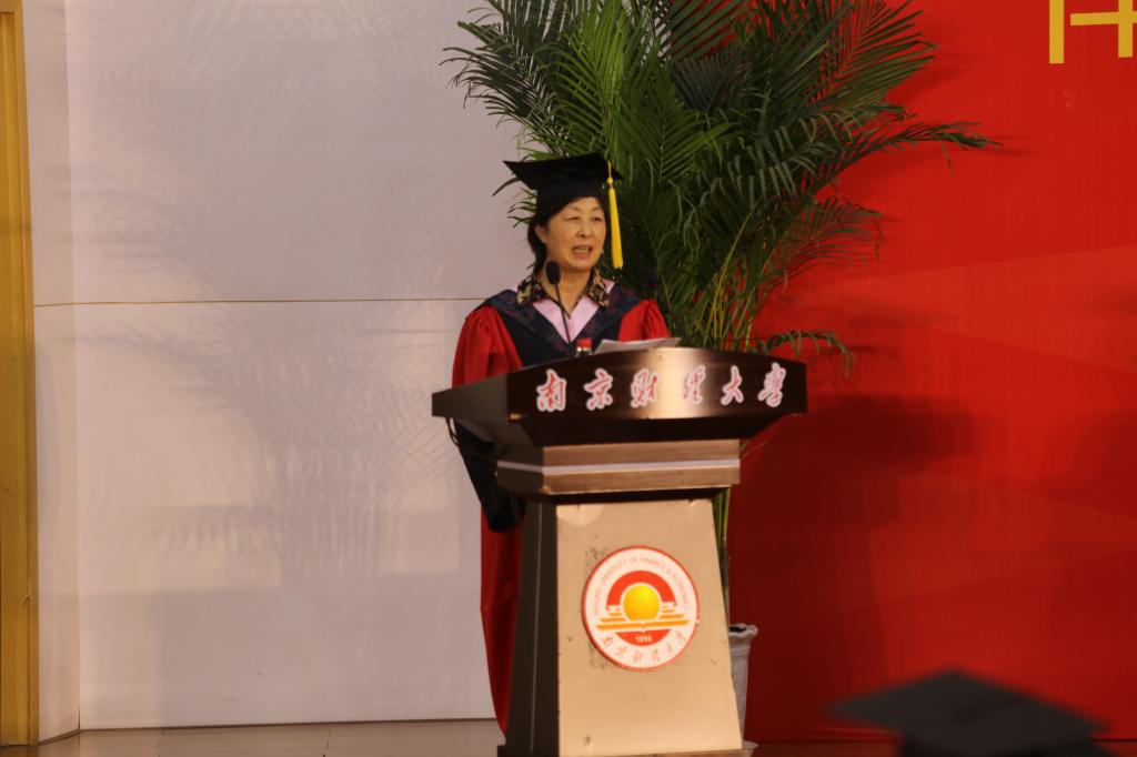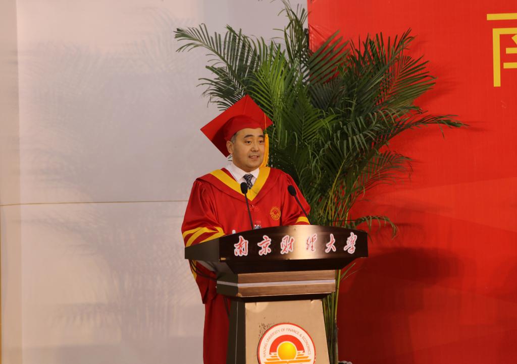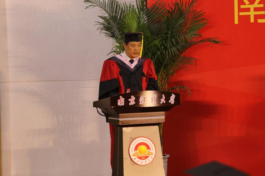 校学位评定委员会副主席、副校长时现教授宣读《关于同意刘云等3883名同学毕业的决定》《关于余聪等719名同学毕业的决定》《关于表彰南京财经大学2020届优秀本科毕业生的决定》《关于表彰2020届优秀毕业研究生的决定》。
