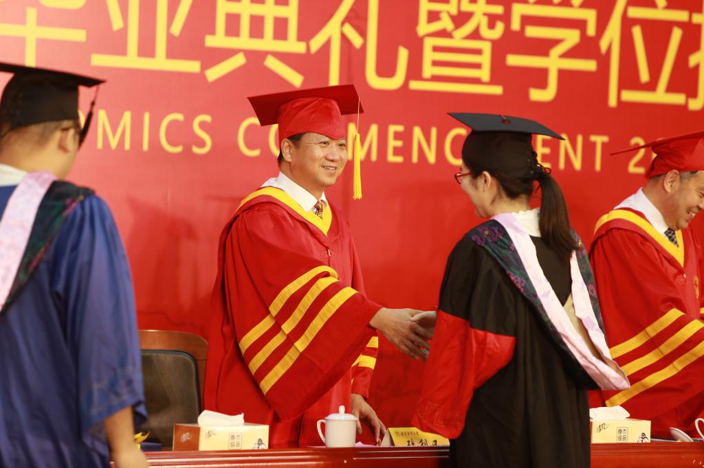 校党委书记张利民为获得学位的毕业生代表颁发学位证书