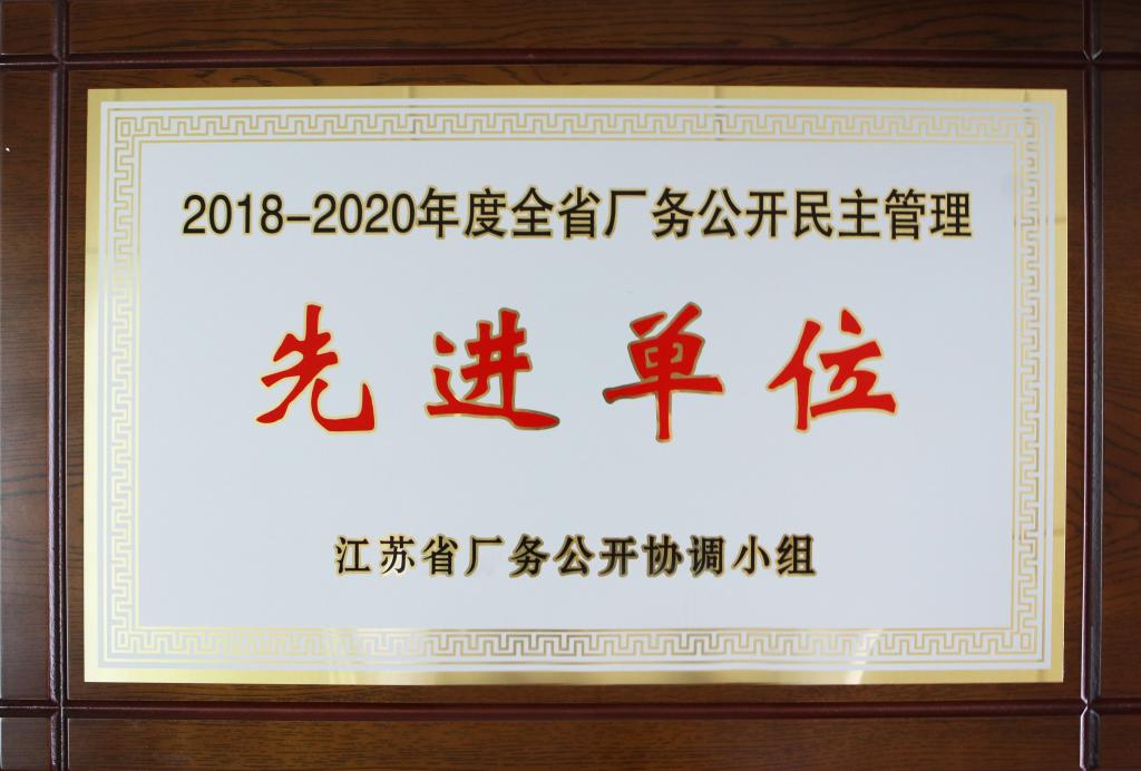 我校喜获“2018-2020年度江苏省厂务公开民主管理先进单位”称号