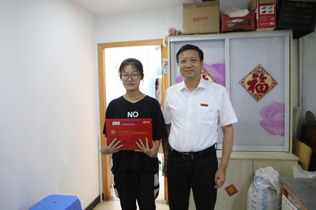 上午,张利民书记一行来到丹阳,为今年以高分被我校录取的田梦露同学发放录取通知书。在田梦露同学家中,张利民书记向她亲手颁发了编号为“200001”的录取通知书,并与田梦露同学及其父母进行了交流。张利民书记向他们简要介绍了学校的办学特色以及学校近年来各方面所取得的发展成绩,对田梦露同学经过刻苦努力考入南财大表示热烈祝贺。张利民书记还以自己的求学成长经历勉励田梦露同学要感恩父母,入校后继续刻苦学习,培育坚毅、笃定的品行,在南财这片沃土上励志前行,绽放青春。