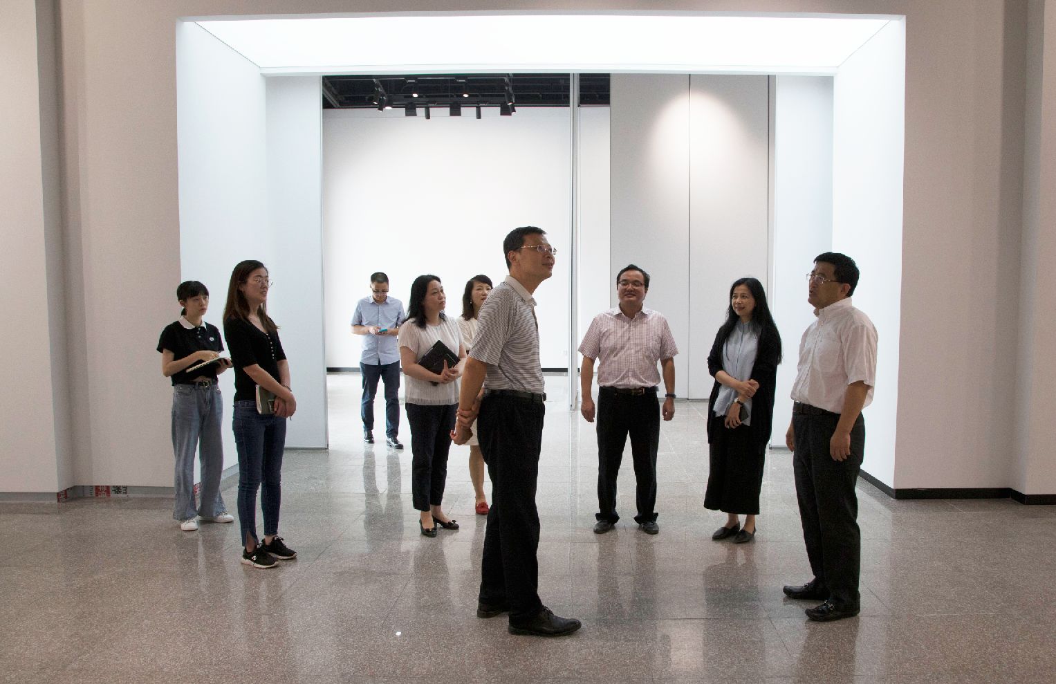 潘志宏副主任肯定了我校在仙林大学城文化建设中作出的成果,并对美术馆未来发展提出了建设性的意见。潘志宏副主任表示,仙林大学城管委会将继续支持我校各方面工作,希望学校可以制定美术馆对外开放具体措施安排,同时结合线上方式拓宽美术馆信息发布渠道,将“用文化装潢仙林”落到实处。