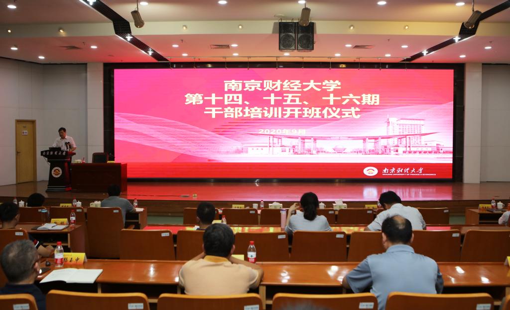 9月16日下午,我校第十四、十五、十六期干部培训班开班仪式举行。会议设主会场与分会场,以视频形式进行同步直播。校党委副书记温潘亚出席开班仪式并作动员讲话,中共江苏省委党校、江苏省行政学院科学社会主义教研部主任王金水教授应邀作专题讲座。校领导、全体中层领导干部、党外人士代表在仙林校区图书馆一楼报告厅、行政楼二楼报告厅及工科楼二楼会议室参加培训,科级干部在仙林校区德经楼报告厅参加培训。