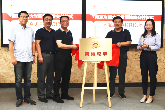 9月18日下午,我校智慧教室交付仪式在仙林校区博文楼101教室举行。江苏天技科技实业有限公司董事长樊友国,校党委常委、副校长乔均共同为智慧教室揭牌。仪式由对外联络处副处长(主持工作)王立峰主持。