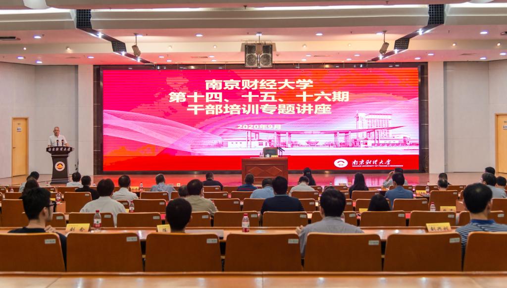 9月23日下午,我校第十四、十五、十六期干部培训班举办纪念中国人民抗日战争暨世界反法西斯战争胜利75周年专题讲座。专题讲座设主会场与分会场,以视频形式进行同步直播。南京大学政府管理学院庞绍堂教授应邀作专题讲座。校领导、全体中层干部和党外人士代表在仙林校区图书馆一楼报告厅、行政楼二楼报告厅及工科楼二楼会议室参加培训,科级干部在仙林校区德经楼报告厅参加培训。培训讲座由党委常委、副校长张为付主持。