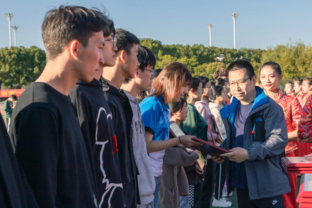 党委常委、宣传部部长石奇为获得“体育道德风尚奖”的代表队颁奖