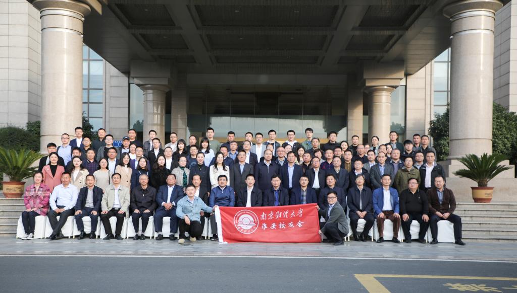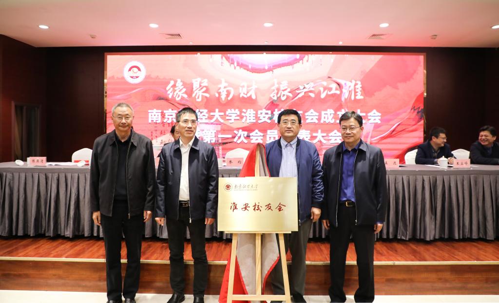 乔均副校长代表学校向孟逸会长授予淮安校友会会旗,并和焦富民校长、陈亚清名誉会长、孟逸会长一起为淮安校友会揭牌。乔均副校长为淮安校友会负责人颁发了聘书。