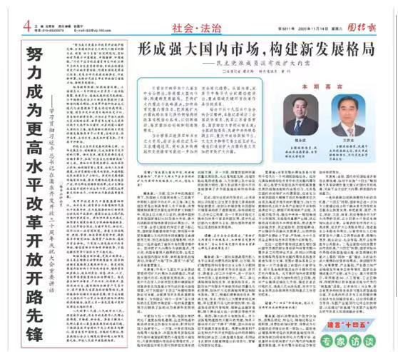 会后,程永波校长就会议相关主题接受《团结报》采访,围绕中共十九届五中全会提出的“形成强大国内市场,构建新发展格局”,畅谈了扩大内需的意义及如何有效扩大内需。
