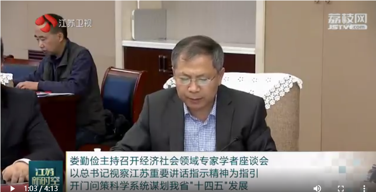 11月19日,江苏省委书记娄勤俭主持召开经济社会领域专家学者座谈会,深入学习贯彻习近平总书记视察江苏重要讲话指示精神,听取对江苏“十四五”规划编制的意见和建议。省领导樊金龙、郭元强及省有关方面负责同志出席座谈会。娄勤俭强调,要坚持用习近平新时代中国特色社会主义思想解放思想、统一思想,深入贯彻落实党的十九届五中全会精神,以习近平总书记视察江苏重要讲话指示精神为指引,科学系统谋划好我省“十四五”发展,坚决扛起党中央赋予江苏的“争当表率、争做示范、走在前列”的使命,在新的起点上不断推动“强富美高”新江苏建设。我校卞志村教授、宣烨教授等我省经济社会领域10位专家应邀参加座谈会并发言。
