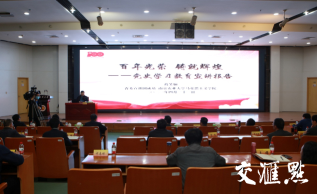 交汇点讯 421日,党史学习教育省委宣讲团成员、南京农业大学马克思主义学院教授葛笑如来到南京财经大学开展宣讲。宣讲报告会由南京财经大学党委书记张利民主持。