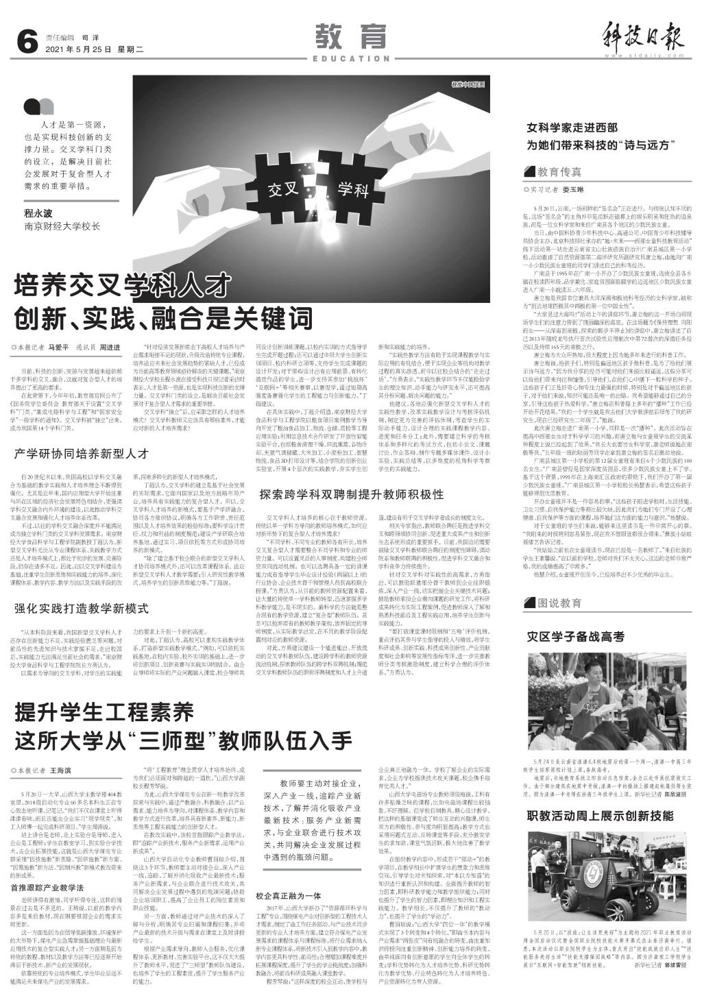 他建议,各地应强化新型交叉学科人才的实践性教学,改革实践教学设计与考核评估机制,制定更为完善的评估体制,考查学生的实际动手能力,设计合理的实践课程教学内容、进度和任务分工;此外,需要建立科学的考核体系和多样化的考试方式,包括小论文、课题讨论、作业答辩、制作专题多媒体课件、设计小实验、实践总结等,以多维度的视角科学考察学生的实践能力。