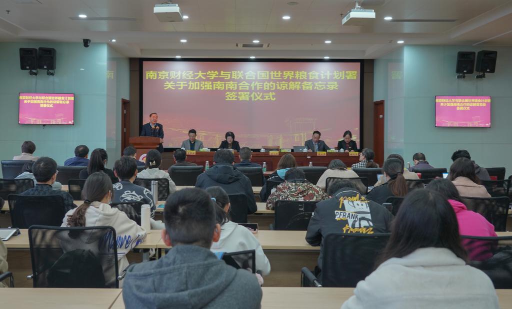 11月17日下午,南京财经大学与联合国粮食计划关于加强南南合作的谅解备忘录签署仪式举行。南京财经大学校长程永波与联合国世界粮食计划署驻华代表屈四喜签署协议。此次谅解备忘录的签署,基于双方前期良好的合作关系,旨在推动双方在粮食流通、粮食产业发展等领域的南南合作,为实现粮食安全、增进营养健康提供可持续解决方案。签署仪式由南京财经大学党委常委、副校长邱伟芬主持。