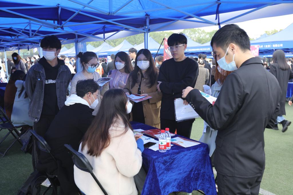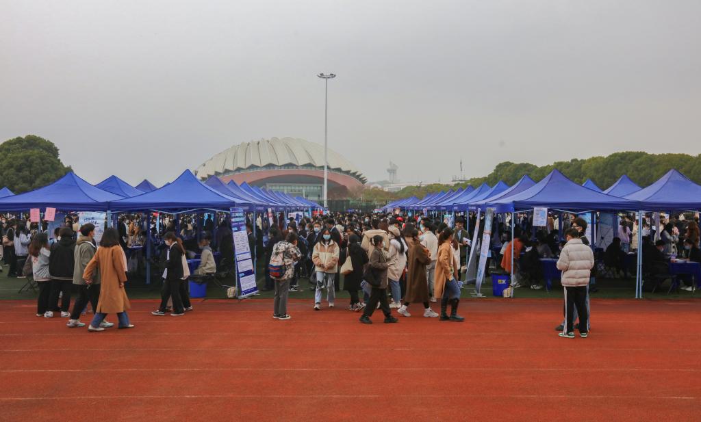11月18日,“逐梦新时代 建功新征程”江苏省2023届高校毕业生暨南京财经大学经济管理类专场招聘会在仙林校区西苑田径场举行。近160家企业携500余个岗位前来招聘,行业类型覆盖金融业、制造业、批发和零售业、信息传输软件和信息服务业等不同领域,岗位类型涉及会计审计、财务管理、市场营销、金融外贸、人力资源等不同类别,合计招聘人数达八千余人,吸引了5000余名2023届应届毕业生前来寻觅心仪岗位。