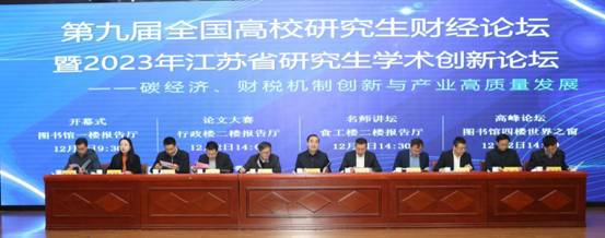 12月2日,第九届全国高校研究生财经论坛暨2023年江苏省研究生学术创新论坛在南京财经大学仙林校区举行。本届论坛以“碳经济、财税机制创新与产业高质量发展”为主题,紧密结合当前经济社会形势,聚焦财经类学科学术前沿热点问题,探索中国故事,探讨解决方案,为推动我国经济社会高质量发展贡献学术智慧。
