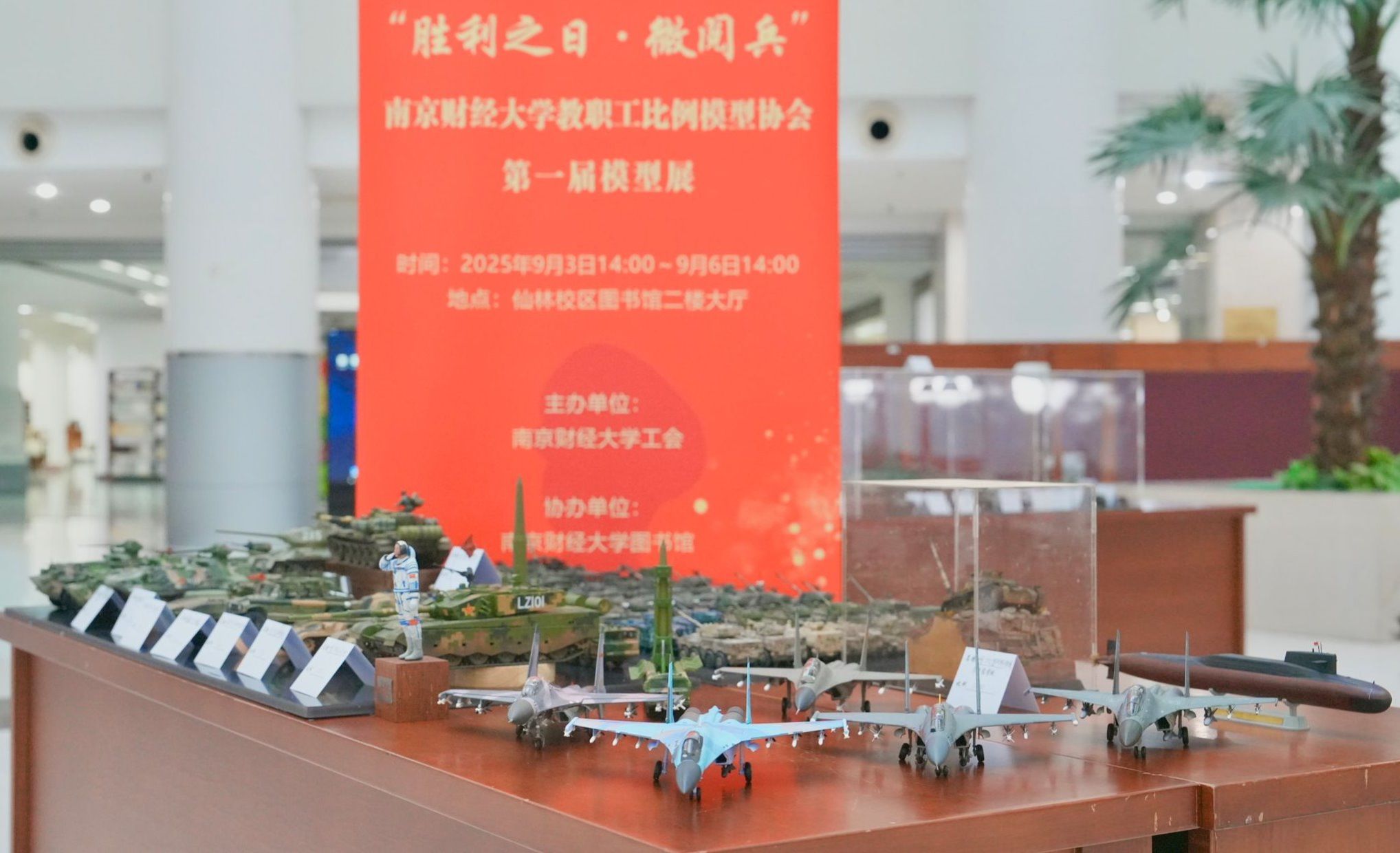 为纪念抗战胜利80周年,9月3日,南京财经大学举办“胜利之日·微阅兵”模型展,活动由学校工会主办、图书馆协办、教职工比例模型协会承办。