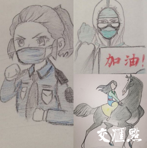 教大家画画的戴泽宇同学表示,“同学们在画的时候,每一笔落在纸上,都饱含着对画中人物的感动和钦佩,尤其是抗疫一线的姐姐们、阿姨们,她们在灾难面前无私、无畏的精神深深刻在我们心里。”