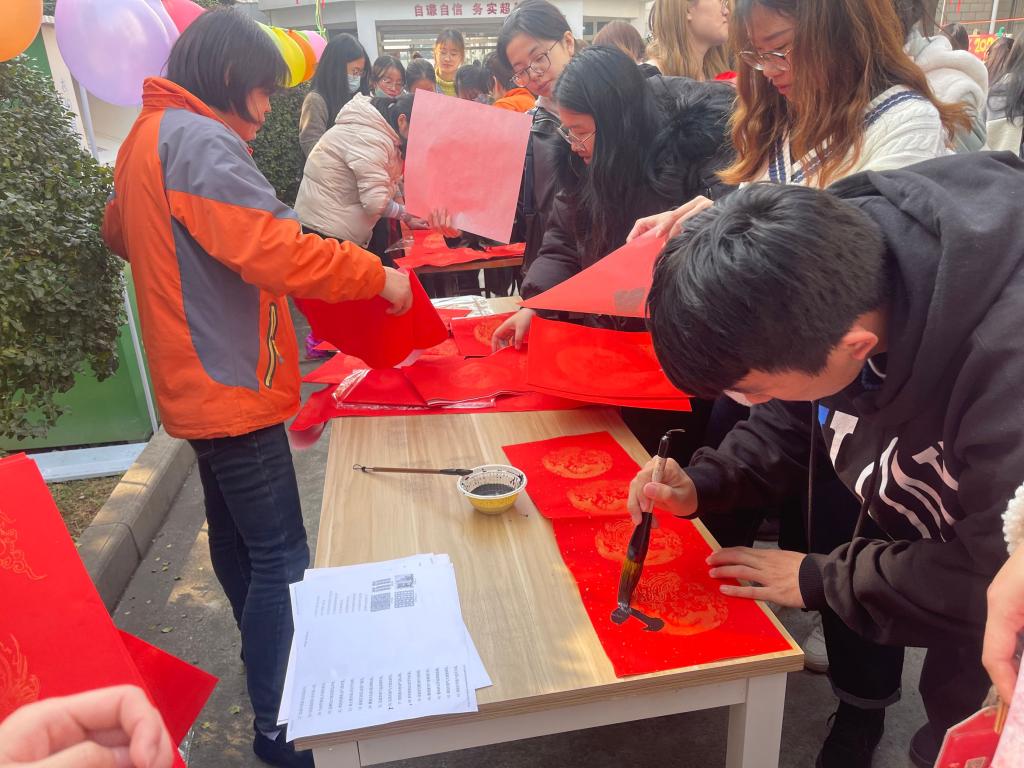 仙林校区西苑的六个宿管站在五号宿管站前联合开展了“迎新春,送春联”活动,邀请了书法协会的同学们现场挥毫泼墨,为大家书写春联、桃符,送达新春祝福。书法协会的同学专注投入,一笔一划地写着春联,落笔之处无不苍劲有力。其他同学则排好队,秩序井然地领取春联和桃符,有的同学还拿起笔亲自上阵,在鲜红的春联纸上写下自己的新年愿望。现场笑声阵阵,年味十足。