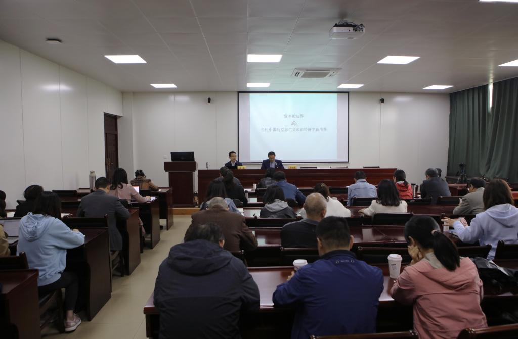 4月12日下午,经济学院联合党委宣传部、教师(教学)发展中心在仙林校区德经楼307会议室共同举办题为“资本的边界与当代中国马克思主义政治经济学新境界”的专题报告会。报告会由校党委常委、党委宣传部部长石奇主讲。报告会由经济学院院长朱红根主持。党委宣传部、图书馆、经济学院等相关部门工作人员和教师代表和学生党支部党员到场聆听报告。