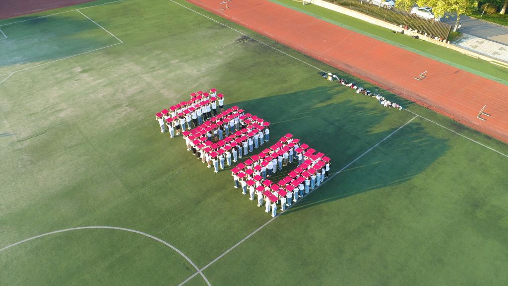 伴随着全场百名新党员“不忘初心跟党走,青春奋进新时代”的青春誓言,118名“00”后新党员迅速变换队形,亮出手中承诺,汇聚成数字“100”,致敬建党百年。