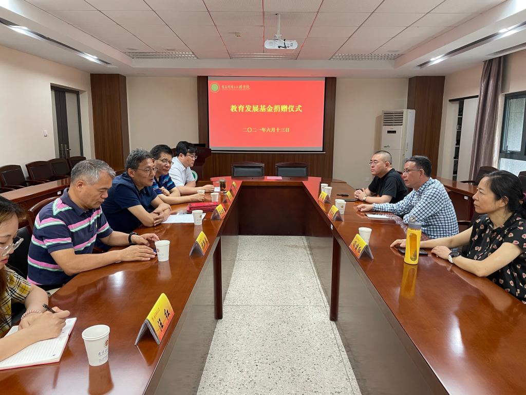 6月13日,食品科学与工程学院教育发展基金捐赠仪式在工科楼211会议室举行,粮油储藏8304班校友、侨基集团董事长曹昌银先生及夫人冯建红女士,应用化学0941班校友、中青产经资本有限公司董事长芦刚,食品科学与工程学院党委书记许文彪、教育发展基金会秘书长周建新教授,教师代表沈新春教授、汪红老师以及学生代表参加捐赠仪式,仪式由学院党委副书记周进进主持。