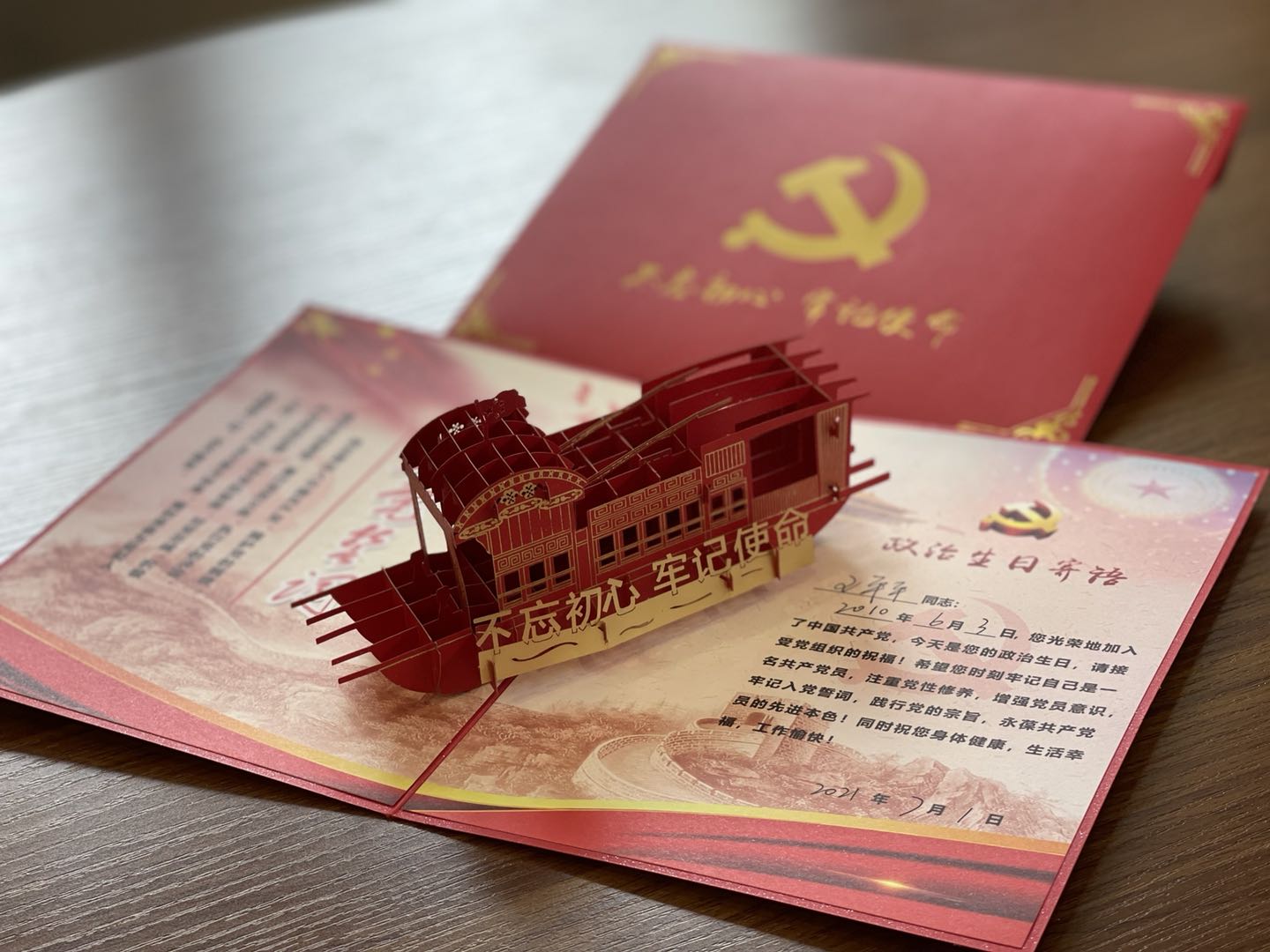 经济学院党委书记陈耀辉向过政治生日的党员同志赠送贺卡