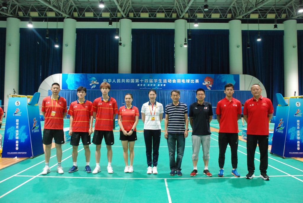 我校派出了由3名运动员、2名教练员、2名裁判员组成的代表队参加本次比赛。其中,潘杰年老师作为江苏省羽毛球队主教练,李伟老师作为江苏省田径队教练员,康鹏飞老师作为篮球项目裁判员,李涤非老师作为排球项目裁判员,参与此次比赛。党委常委、副校长李群和体育部主任何强莅临运动会现场,对参赛运动员教练员进行了慰问和鼓励。