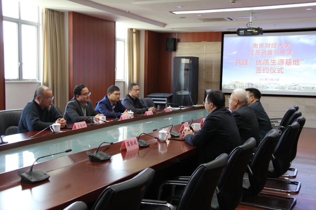 刘浩书记代表学校对省宜兴中学给予我校多年的支持和信任表示感谢,介绍了学校的办学历程、优势特色、育人理念,反馈了近年来省宜兴中学学子在我校的求学发展情况。他希望以此次优质生源基地建设为契机,在学生生涯规划、心理育人、美育教育等方面加强两校之间的交流与合作,共同为社会、为国家输送更多德智体美劳全面发展的高素质人才。