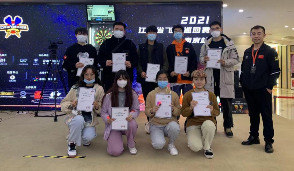 本次大赛由江苏省飞镖运动协会主办,是专门面向飞镖初学者、爱好者的公益比赛。我校代表队由体育部马炳章老师带队,共有九名队员参赛。比赛充分展现了我校学生的体育竞技精神和青春活力的精神风貌。赛后队员积极交流心得,并表示将继续努力训练,刻苦准备,争取明年取得更好成绩。