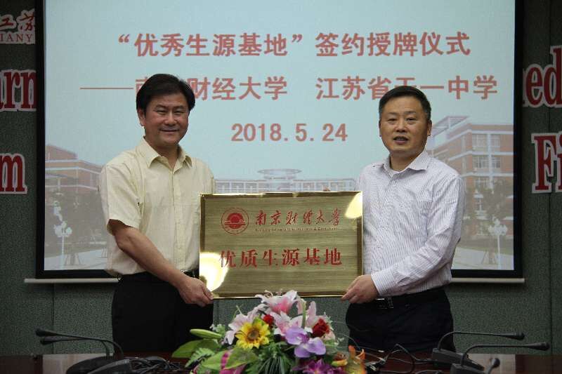 之后,孙丹兵处长与朱卓君校长代表两校签订了《南京财经大学优质生源基地合作协议书》,并授予江苏省天一中学“南京财经大学优质生源基地”铜牌。