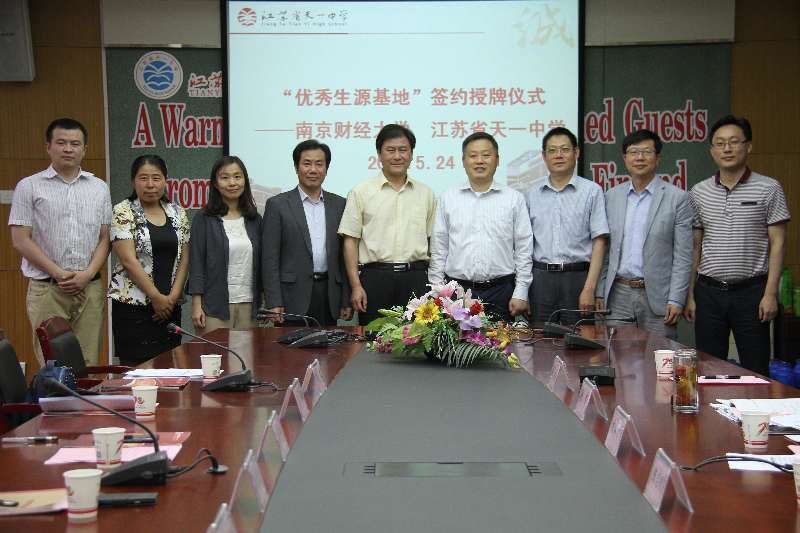 5月24日,我校在江苏省天一中学建立优质生源基地,并举行签约授牌仪式。江苏省天一中学副校长朱卓君、党委副书记兼副校长许芹、副校长陈志刚等相关领导老师,我校学生处处长孙丹兵、副处长孙菲,应用数学学院院长王宏勇、党总支副书记张杰,学生处招生办公室主任张亦佳等参加相关仪式。