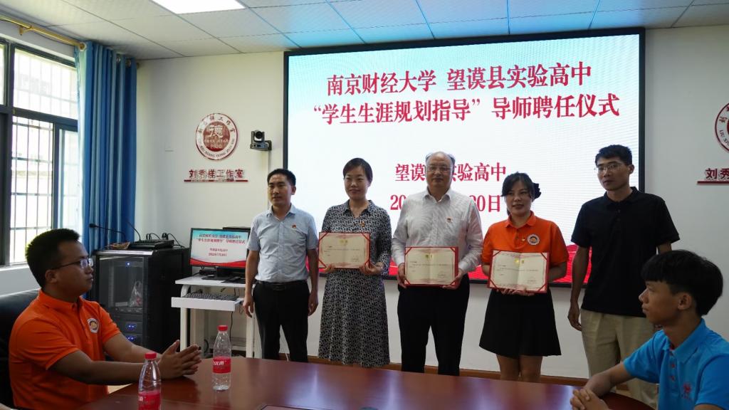 现场举行了南京财经大学望谟县实验高中“学生生涯规划指导”导师聘任仪式和南京财经大学甘诺职业生涯发展工作室授牌仪式。