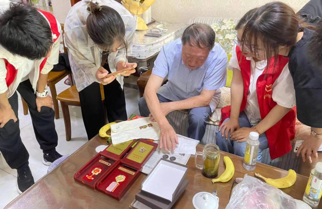 倾听红色故事,传承红色力量。经济学院志愿者看望了董伦、郭礼宝两位退役老兵,为他们送上节日慰问,聆听戎马故事,体会半个多世纪以前舍生忘死的激情岁月。同学们纷纷表示,作为新时代青年,要鉴往事,知来者,要以抗战老兵为榜样,要以老一辈无产阶级革命家为标杆,凝聚初心,激励斗志,坚定理想信念,接过时代的接力棒,用青春的智慧和汗水打拼一个更美好的中国。信息工程学院志愿者线上为原工程兵战士王启礼和南京御道街干休所原副所长马梅平两位老党员送上节日慰问与祝福,并与他们进行深入交流。志愿者与安徽省濉溪县海孜中心校七年级四班的同学们连线,用WEB编程语言向同学们展示重阳节的由来与习俗,分享大学生活及志愿服务活动经历,鼓励同学们不断提升自我,以己之力帮助他人,实现自我价值,为社会奉献自己的一份力量。营销与物流管理学院开展了“九九重阳节、浓情敬祖辈”故事征集活动,有的学生跟着兰考县的奶奶追忆焦裕禄精神,有的学生跟着入伍50年的爷爷追溯信仰。通过故事征集,同学们感受到了祖辈奋斗的不易,透过祖辈经历感知到了祖国的巨大变化,进一步凝聚信仰,汲取力量。